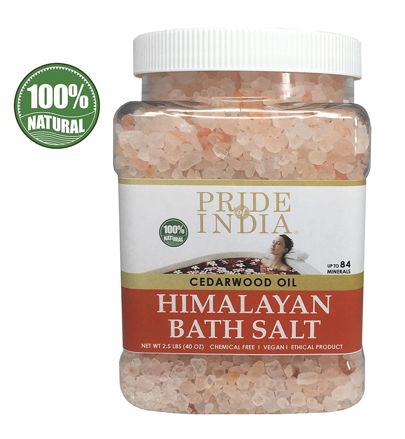 2.BATH SALT WITH CEDARWOOD OIL: This large himalayan bath salt contains up to 85 other minerals to help you get the most benefits out of your bath. Cedarwood oil helps improve focus and reduce skin irritation. Rock salts have traditionally been used in baths to promote healing, relieve sore muscles, and reduce stress. The ingredients in this bath salt are 100% natural.