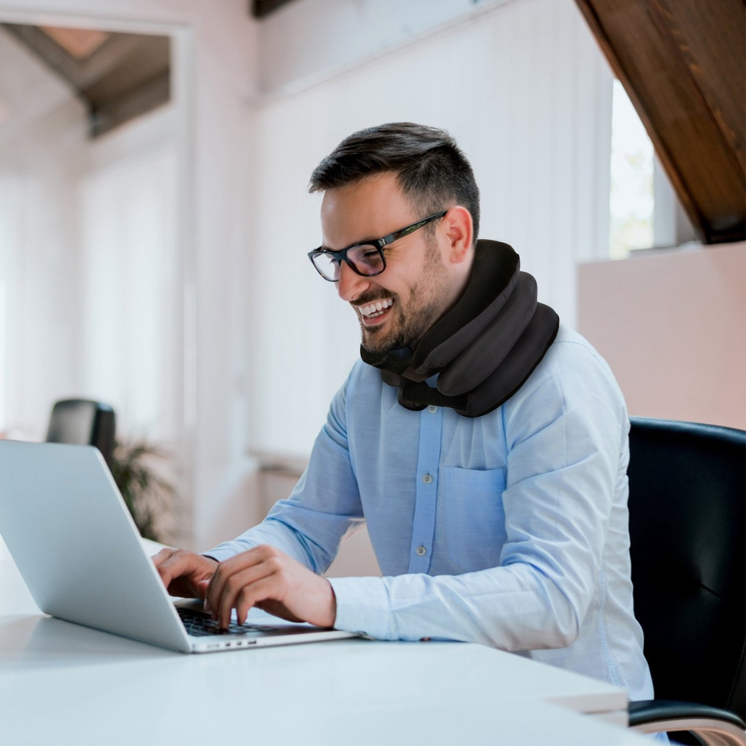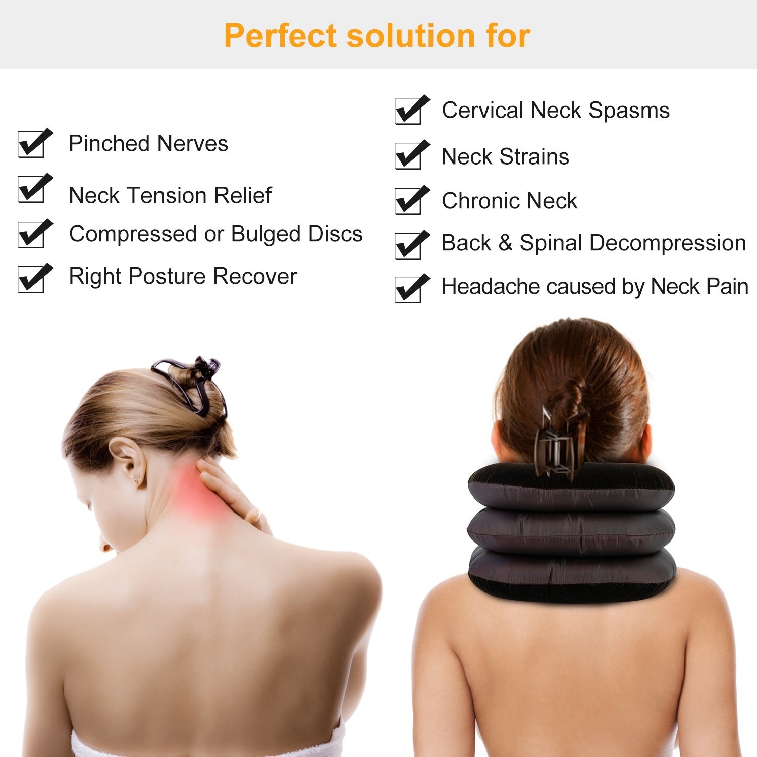 *EASY TO USE AND CARRY*:Inflatable and lightweight compact design; which fits in your suitcase or backpack. You can easily enjoy the comfort of the neck traction anywhere and anytime.