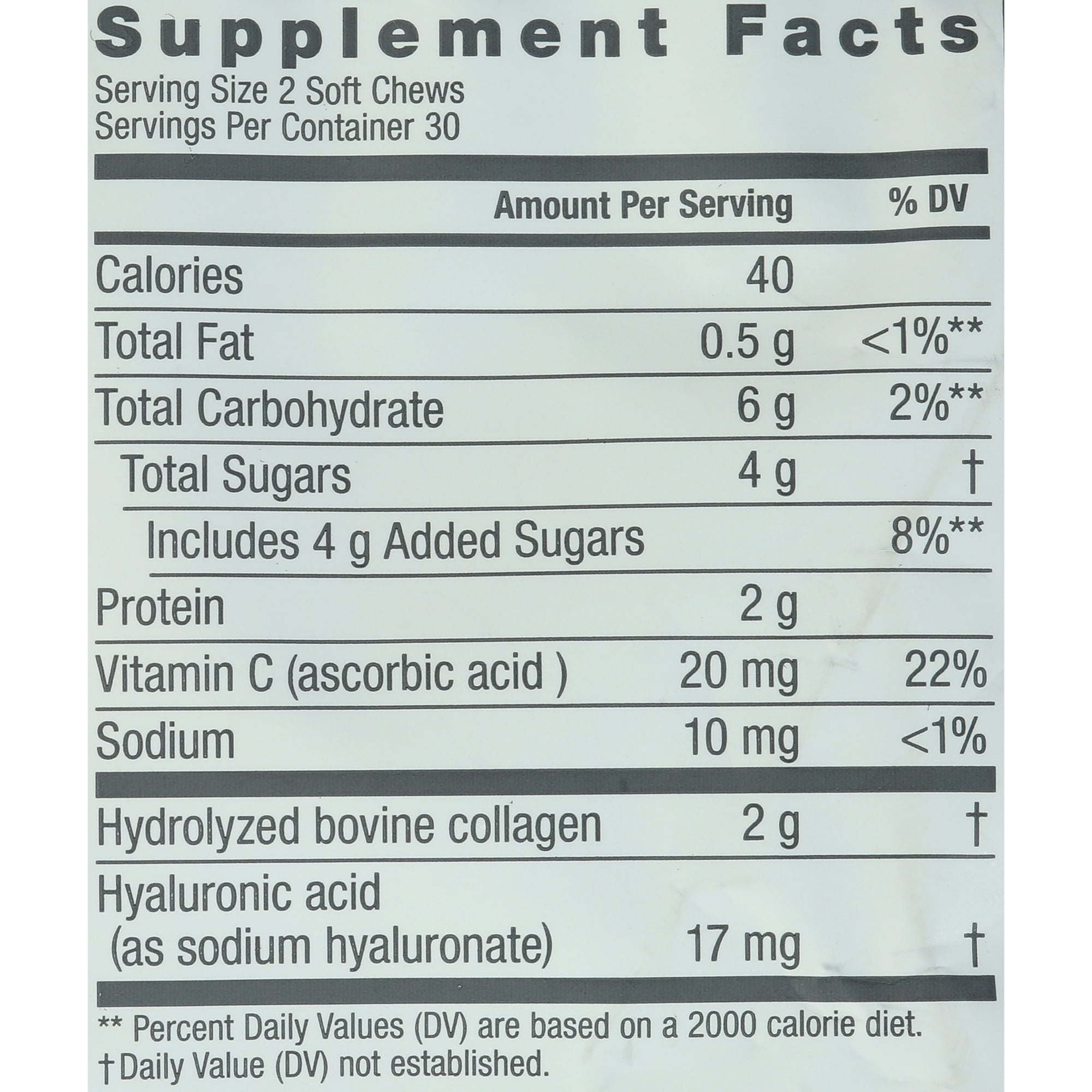 COLLAGEN 1& 3: These soft chews contain 2,000mg of type 1 & 3 collagen per serving.?For maximum results, take 2 to 4 chews daily; a great collagen supplement for women and men alike
