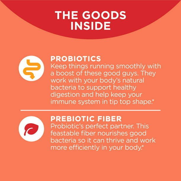 OLLY Probiotic + Prebiotic gummies double down with a boost of the good gut bacteria plus Prebiotic Fiber to help keep things moving in the right direction.* These probiotic suppplement gummies for men and women (unisex) serve up a powerful combination of live Probiotics and Prebiotic Fiber to support natural flora and digestion balance. Probiotics deliver 500 million Bacillus Coagulans, good bugs that work with your body’s natural bacteria to support a healthy digestive tract and immune system, and Prebiotic Fiber nourishes your good bacteria so it can work more efficiently in your body.*