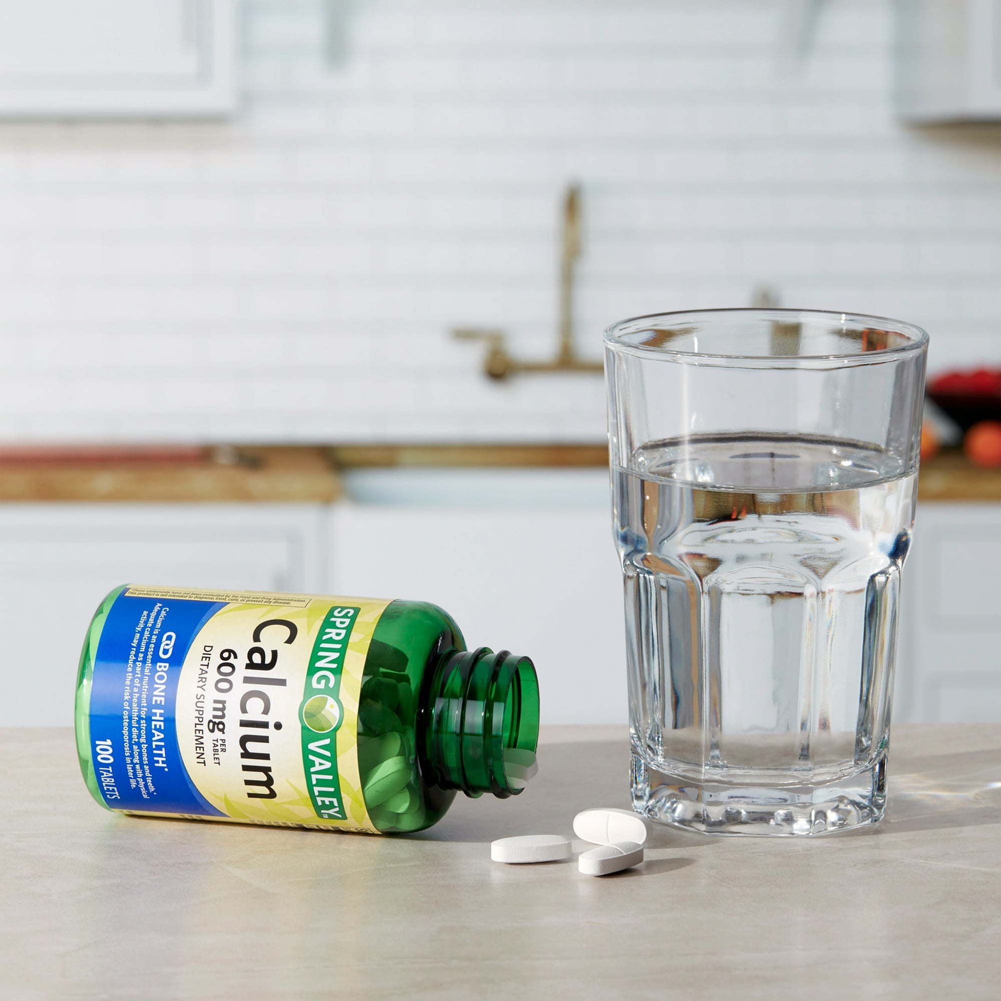 Our Spring Valley Calcium Dietary Supplement; 600 mg; is a dietary supplement formulated to support the health of your bones.* Calcium is an essential nutrient for healthy; normal bone formation; development; and structural health.* Adequate calcium throughout life; as part of a healthful diet; along with physical activity; may reduce the risk of osteoporosis in later life. The suggested adult dosage is 1 tablet twice per day; preferably with a meal. These tablets are free from gluten and lactose and contain no artificial flavors or dyes. You can rest assured that Spring Valley Calcium Tablets Dietary Supplement; 600 mg is produced with strict quality guidelines and backed by our quality guarantee.