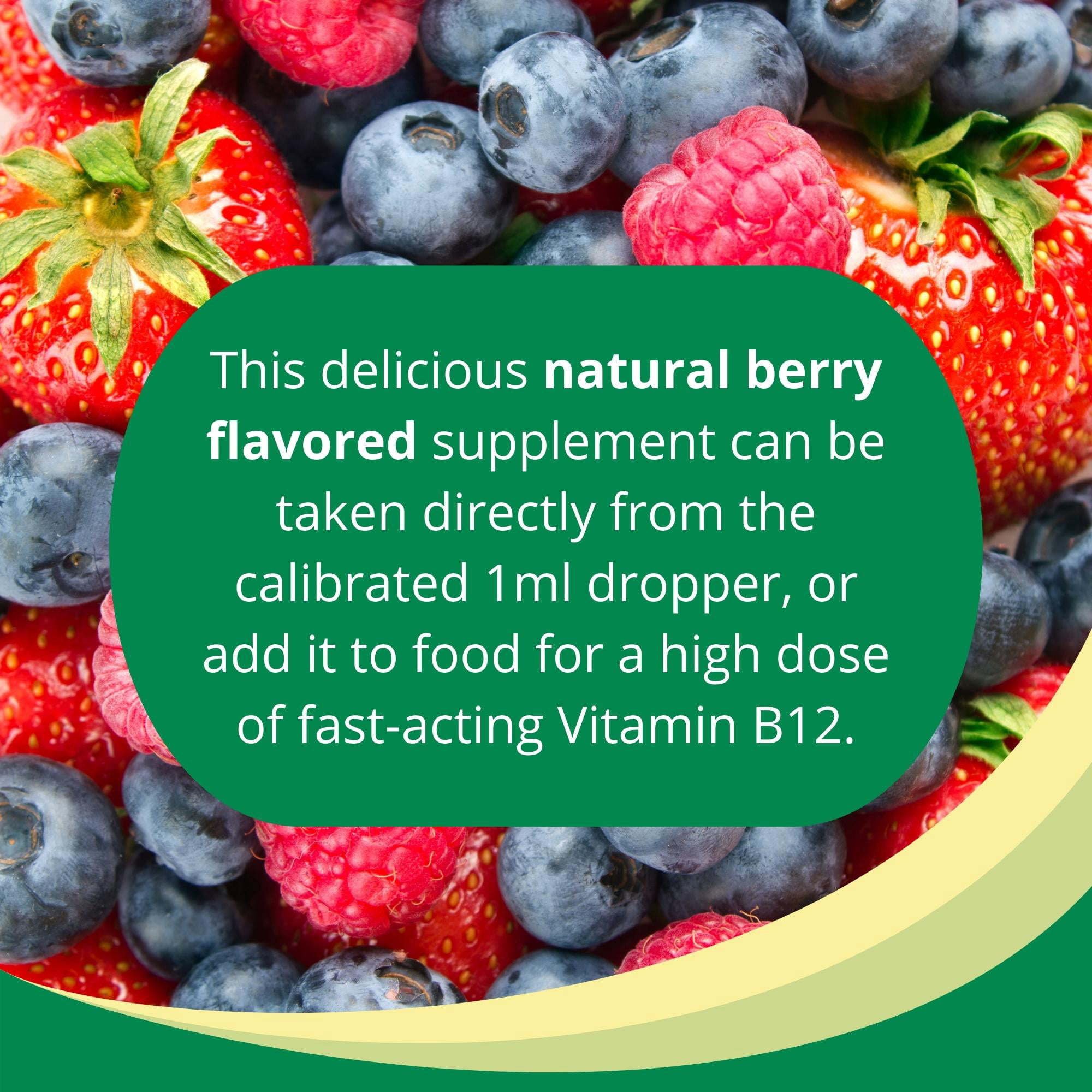 This delicious natural berry flavored supplement can be taken directly from the calibrated 1ml dropper; or add it to smoothies or food for a high dose of fast-acting Vitamin B12. Vitamin B12 is essential for healthy energy metabolism and also supports cardiovascular and nervous system health.