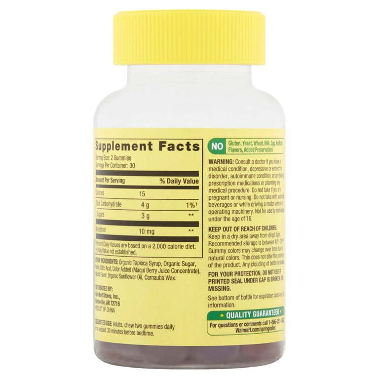 Spring Valley Non GMO Melatonin Dietary Supplement Gummies, Blueberry, 10 mg, 60 Count Spring Valley Non GMO Melatonin Dietary Supplement Gummies, Blueberry, 10 mg, 60 Count Spring Valley Non GMO Melatonin Dietary Supplement Gummies, Blueberry, 10 mg, 60 Count
