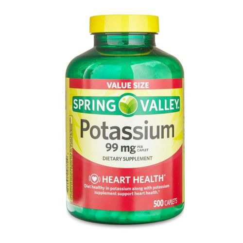 Our Spring Valley Potassium Caplets Dietary Supplement Value Size; 99 mg is formulated to promote a healthy heart.* Each caplet delivers 99 mg of potassium. Diet healthy in potassium along with potassium supplement support heart health.* This formula contains no gluten; lactose; sugar; artificial colors or flavors; and is also suitable for a vegetarian diet. You can rest assured that Spring Valley Potassium Caplets Dietary Supplement Value Size; 99 mg is produced with strict quality guidelines and is backed by our quality guarantee.