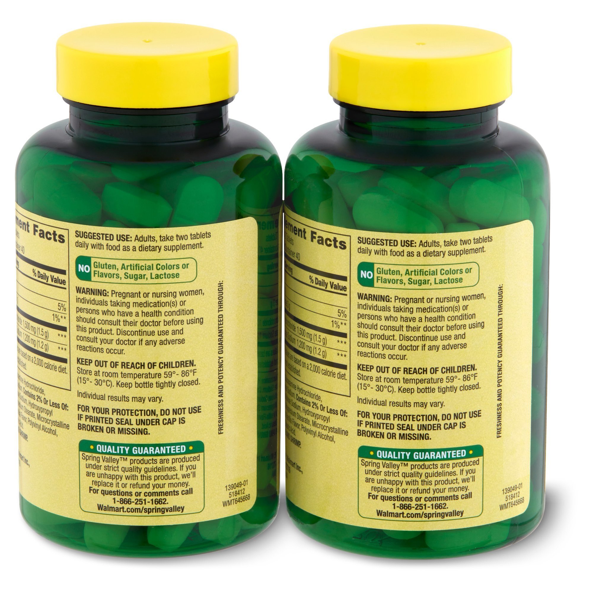 Spring Valley Triple Strength Glucosamine Chondroitin Dietary Supplement Twin Pack is designed to provide joint health support. Glucosamine and chondroitin provide nutritional support for connective tissues; promoting joint health and comfort. The suggested adult dosage is two tablets daily; preferably with a meal. These tablets are free from gluten; artificial colors or flavors; sugars; and lactose. You can rest assured that Spring Valley Triple Strength Glucosamine Chondroitin Dietary Supplement Twin Pack is produced with strict quality guidelines and is backed by our quality guarantee.